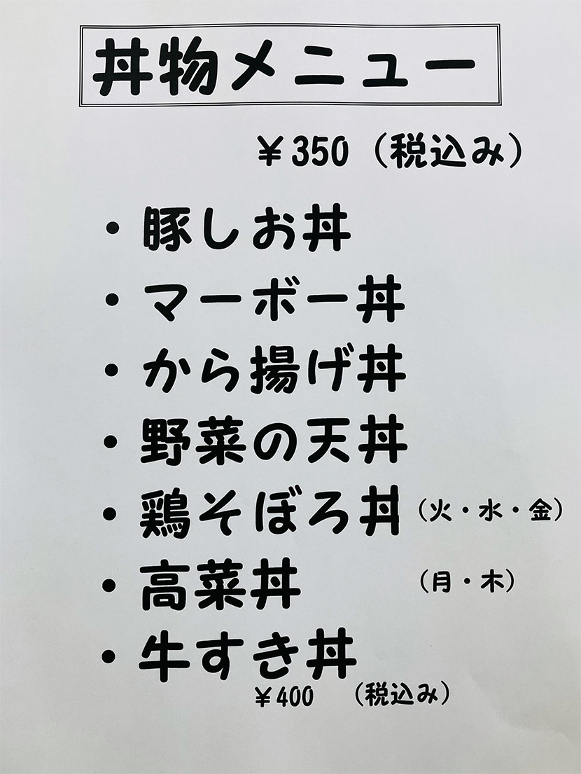 お惣菜カップ麺等各 10円増とさせて頂きます。