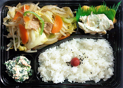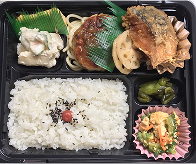 ヘルシーな豆腐でつくったハンバーグのお弁当です。